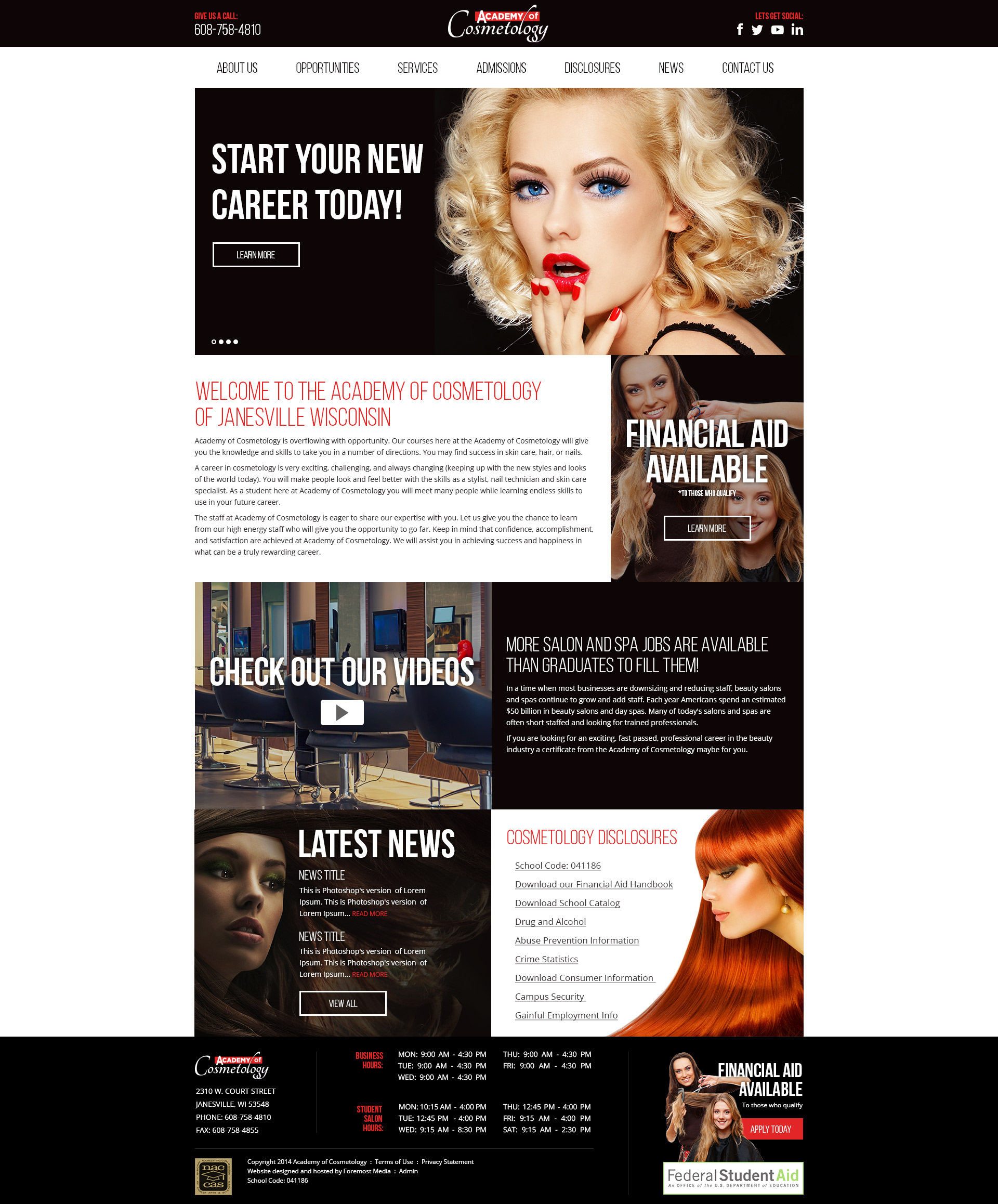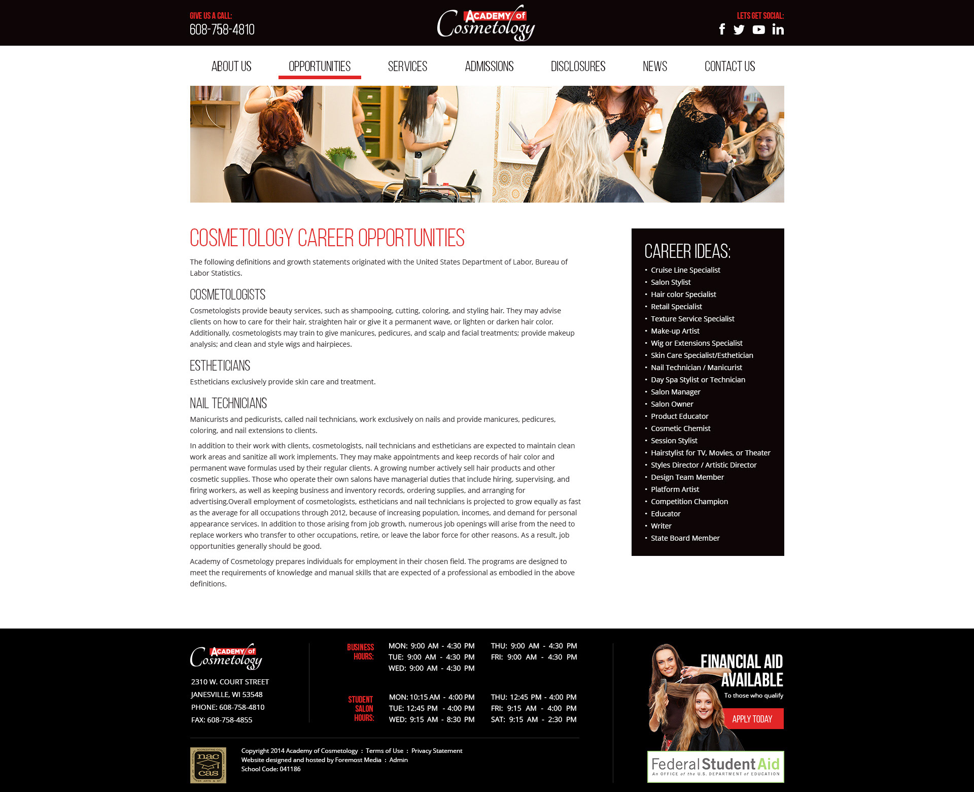 Academy of Cosmetology Website Design